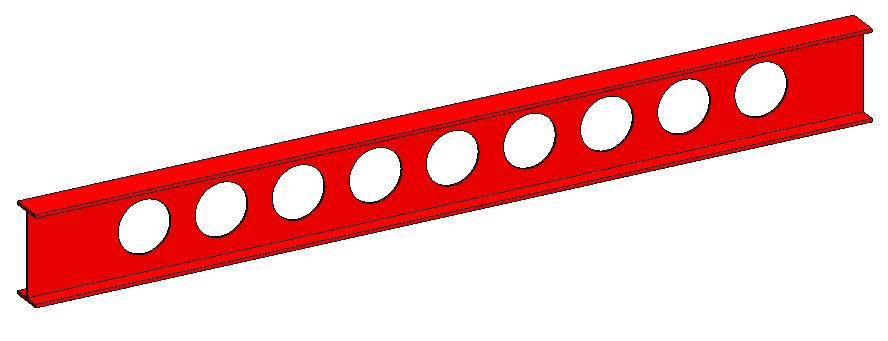 Je souhaiterais savoir si quelqu'un aurait ce genre de famille Revit (voir image ci-après) poutre métallique avec réservations paramétrables.
