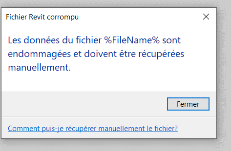 Fichier revit endommagé