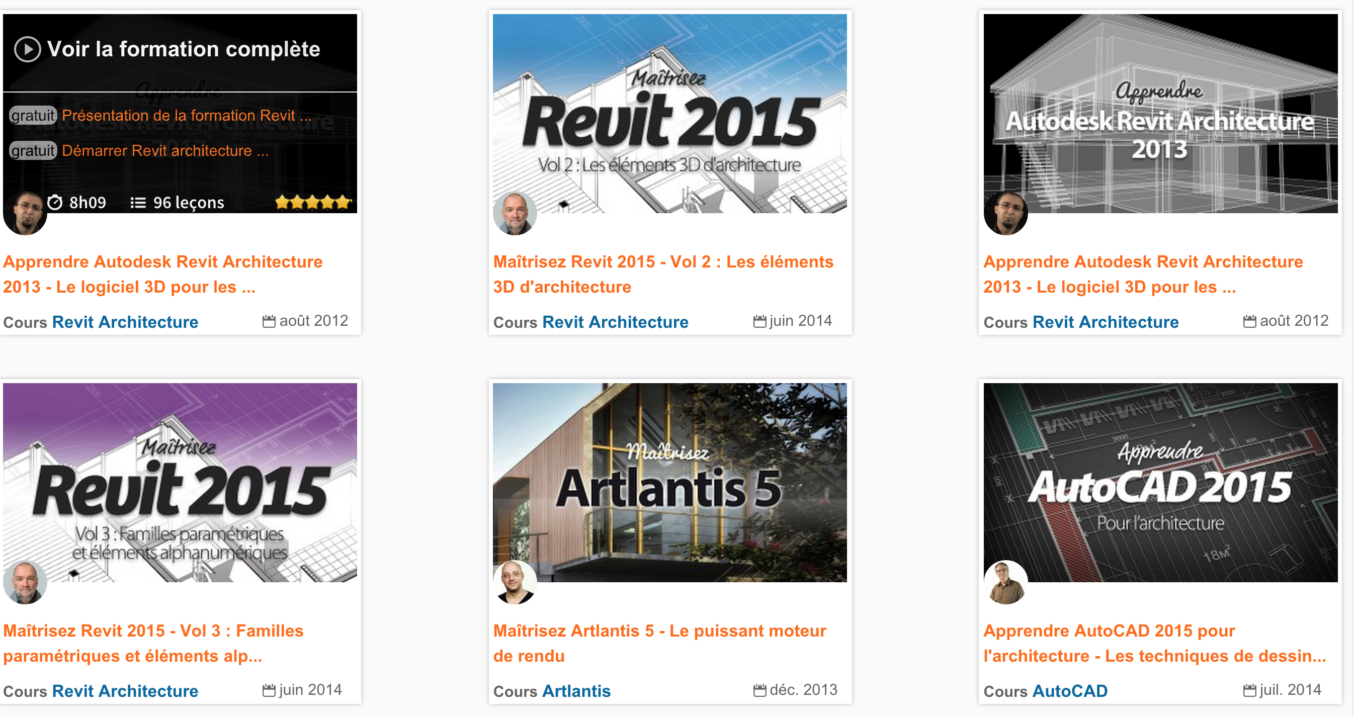 Je confirme que la formation Elephorm sur REVIT 2015 de Didier Hoffman est de bonne qualité. Je ne connais pas les autres.