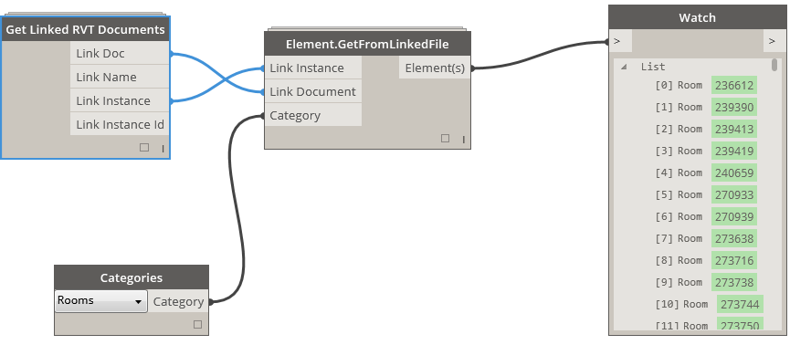 Mon objectif est de sélectionner mes pièces (qui sont incluses dans un lien Revit) dans Dynamo.