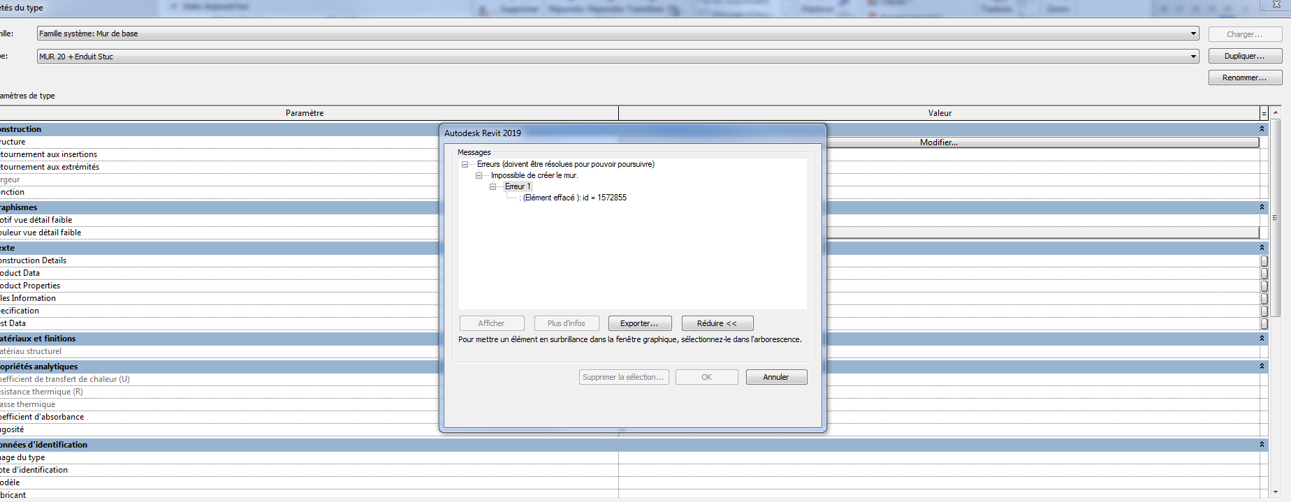 Quand je souhaite visualiser l'aperçu de la composition du mur, j'ai le message ci-joint...