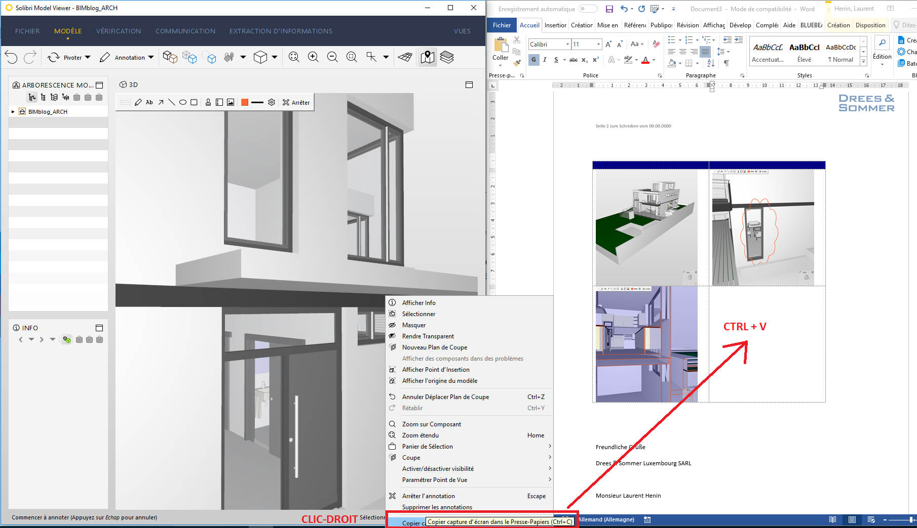 J'ai aussi réussi à sortir une image (jpg ou BMP) de la vue en cours avec la fonction exporter du logiciel.