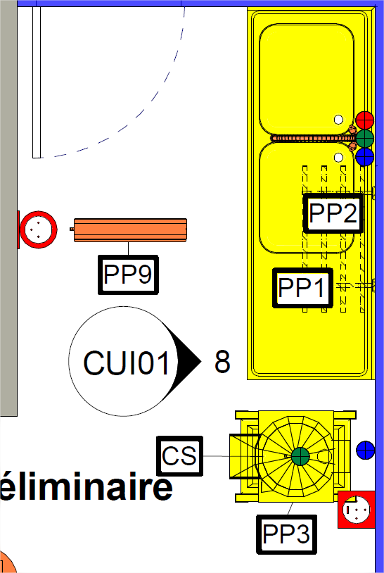 Comme ces boules de couleurs sont souvent "sous" mon mobilier, j'ai ajouté un symbole d'annotation dans mon modèle générique (zone remplie en cercle, de la même couleur), comme ça, l'information est toujours visible.