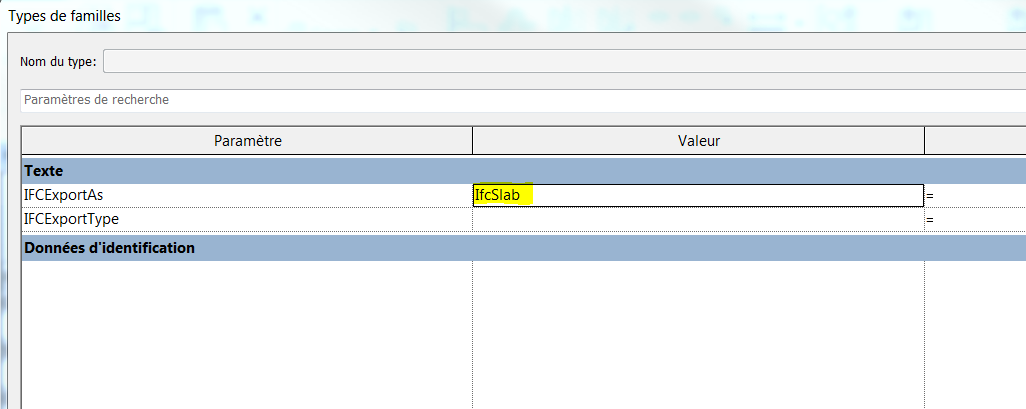 Vous pouvez également créer un paramètre partagé qui pourra être utilisé dans vos familles pour assigner une catégorie IFC à votre famille lors de l'export.