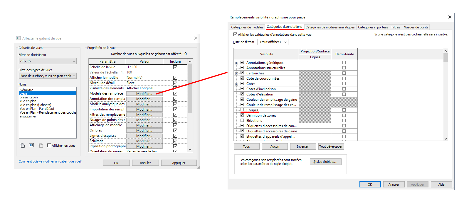 bonjour, mes coupe disparaissent des que j’applique un gabarit de vue.