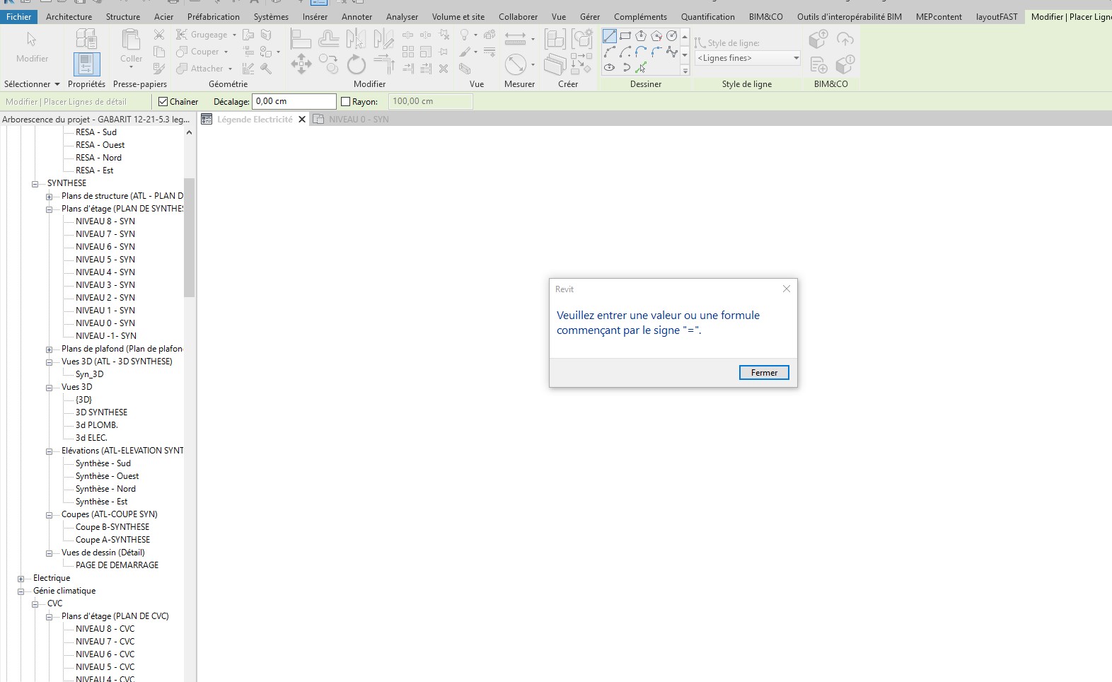 Message d'erreur Revit (formule)