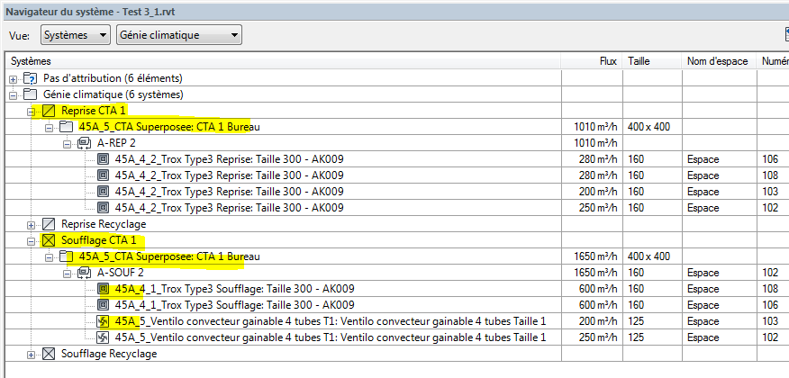 Pourtant REVIT le fait dans le navigateur du système (vue système / génie climatique)