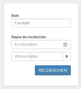 Une nouvelle mise à jour, on vient d'ajouter une barre latérale pour la recherche par liste, il suffit de saisir le nom de la ville ou région ainsi que le rayon de recherche.