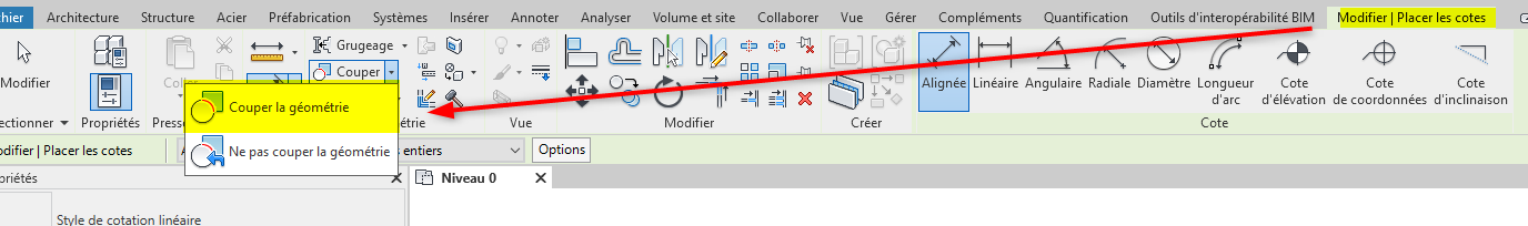 Ensuite dans le projet il faut aller dans Modifier et couper la géometrie avec le mur et puis la dalle