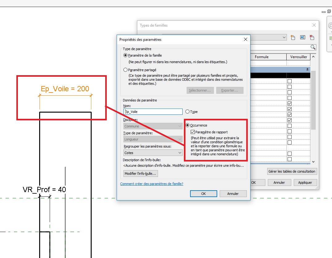 avec à minima tous les paramétrés listés ci dessus + un paramètre d'identification appelé "mannequin", pour référencer le type de mannequin qui sera utiliser sur chantier pour créer l'ouverture :