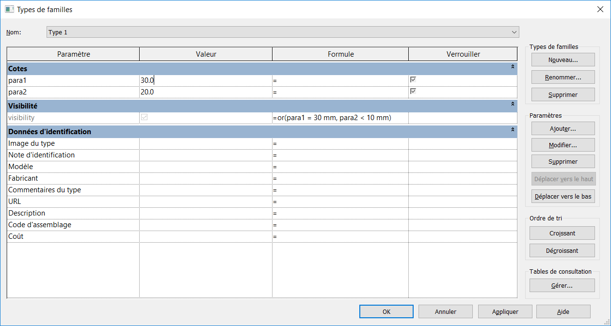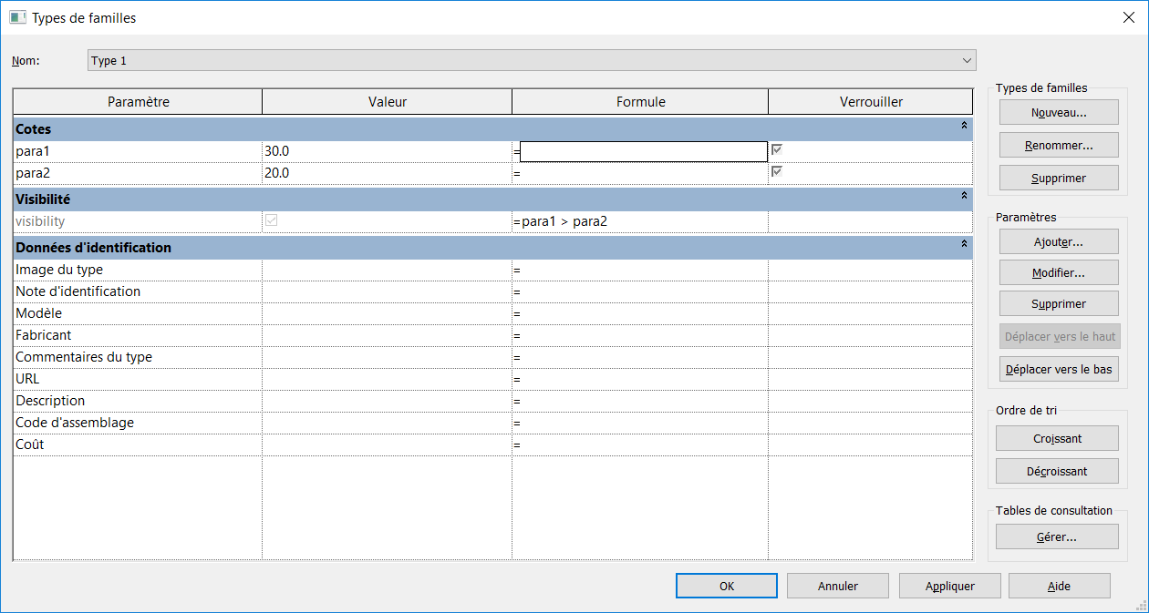 Paramètre de visibilité révit