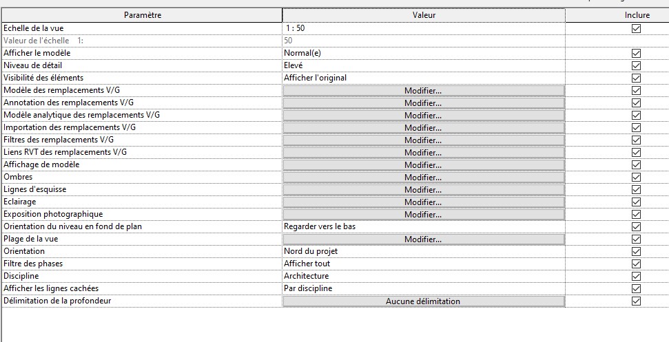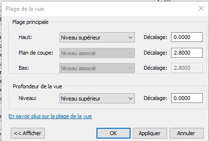 Je ne parviens pas à comprendre comment régler la plage de vue, puisque j'ai toujours les niveaux supérieurs qui apparaissent malgré plusieurs paramétrages différents