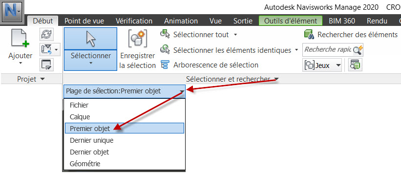 concernant Navisworks il faut aller dans le menu :