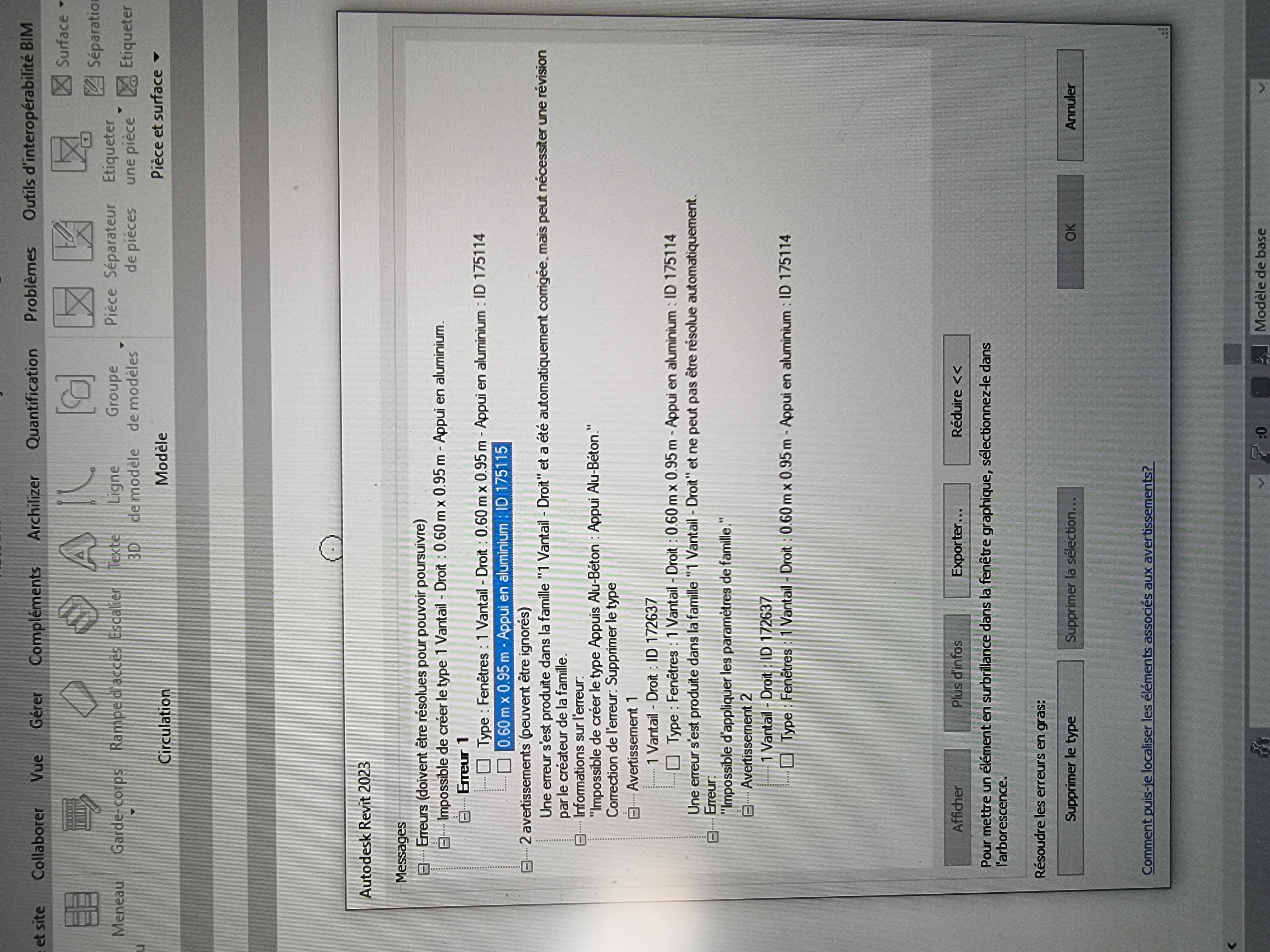Je continue a travaillé sur mon pc personnel également avec revit 2023 j'arrive a ouvrir mon projet mais impossible d'accéder a modifier famille j'ai un message d'erreur "erreur impossible d'ignorer" même pour une famille bibliothèque revit.