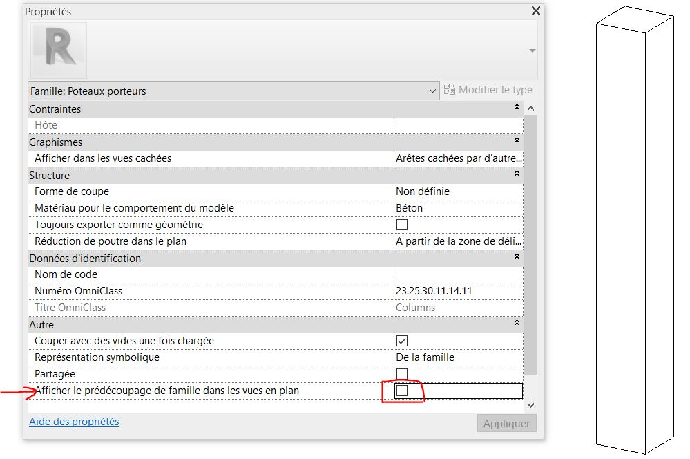 Problème hachurage des poteaux coupés - Revit