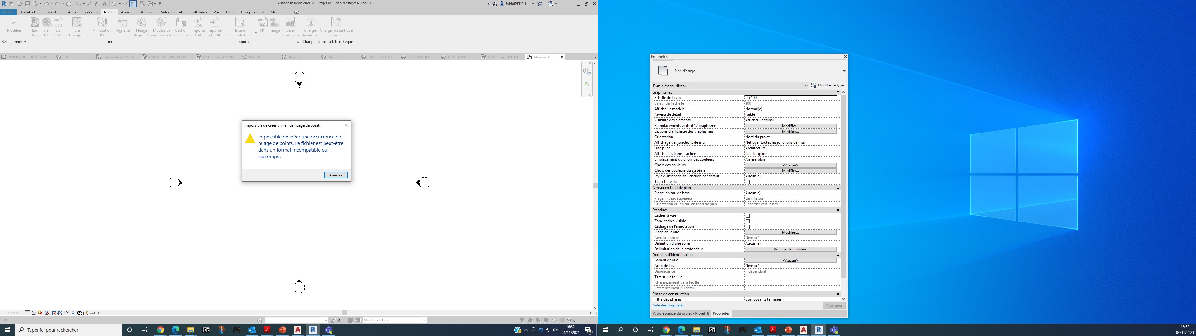 Nous avons 3 pc équipé de licences Revit, via REVIT 2020 ou autre versions, nous arrivons à insérer un nuage de point en rcp classique sur l'un des PC.
