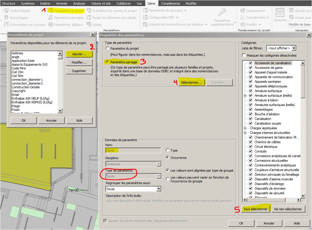 merci pour votre réponse, j'ai créé ce paramètre partagé "zone test 11 e 22", vous pouvez me montrez comment je peux renseigner les installations électriques à la zone ou vice versa, j'ai essayé mais je peux rien choisir dans l'onglet zone.