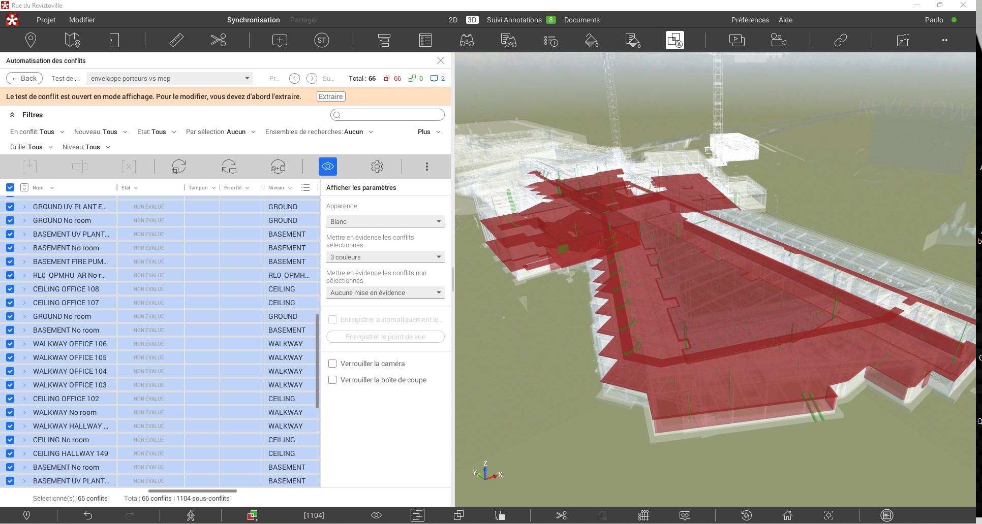 Aussi et pour les besoins openBIM, je sollicite aussi très régulièrement l'excellent eveBIM qui est un outil qui gère les annotations bcf mais aussi les détections de collisions.
