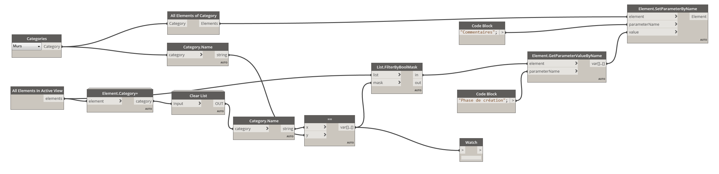 Avec dynamo il suffit de récupérer l information dans les différents objets concernés et de l affecter à un parametres partagé.