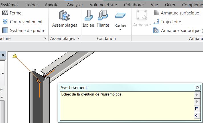 Depuis approximativement l'installation de POINTSENSE pour REVIT (il y a 2 semaines), chaque tentative de création d'un assemblage structurel se solde par un échec.