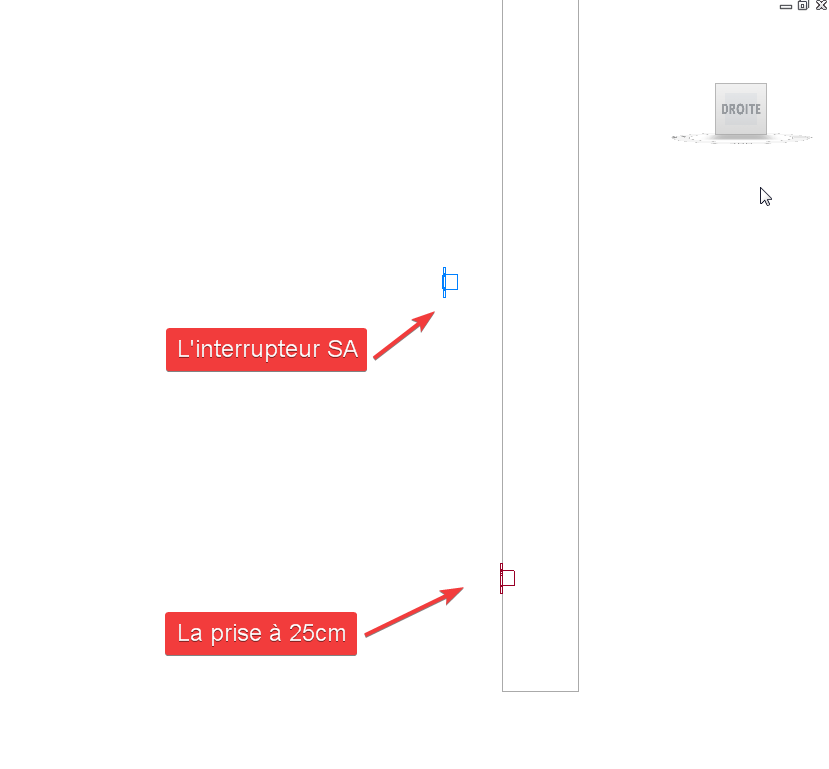 Je me heurte à un problème récurrent, lors de la réalisation d’un plan 2D, exemple je représente l’interrupteur sous une prise de courant de la manière suivante :