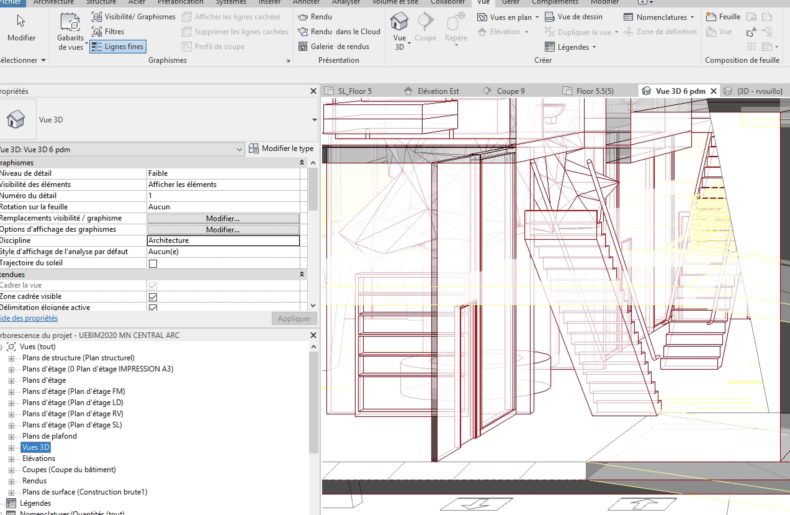 Je cherche à réaliser une coupe perspective filaire d'une maquette Revit, avec les surfaces en blanc et sans les lignes cachées, sans ombres. Je n'arrive pas à masquer les lignes cachées qui apparaissent dans ma vue 3D, que j'affiche en "Ligne cachée" pour avoir les murs en blanc sans ombres. C'est un ancien projet que je réouvre pour cet export, et je n'arrive pas à me figurer quels réglages nous aurions toucher à l'époque qui m'empêche de le faire.