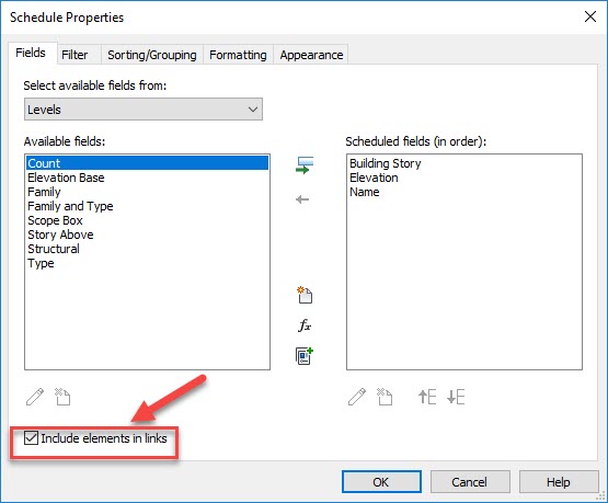 tu peux juste cocher la case Lien Revit puis tu ajoute les paramètres que t'as besoin inclus les niveaux: