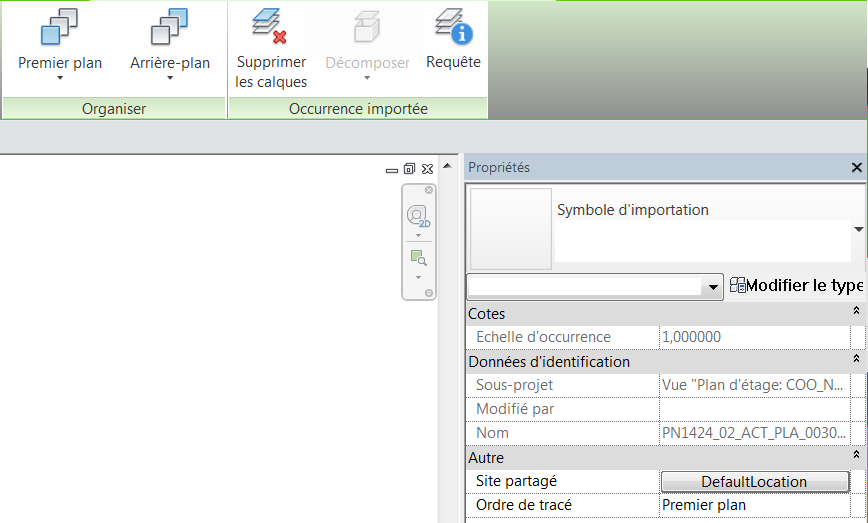 J'ai le même problème d'ordre de tracé avec mon dwg. J'ai bien lié mon fichier (et non importé) et je n'ai pas les boutons "arrière plan / premier plan". Cela peut-il venir de ma version de Revit ? J'utilise Revit 2018.