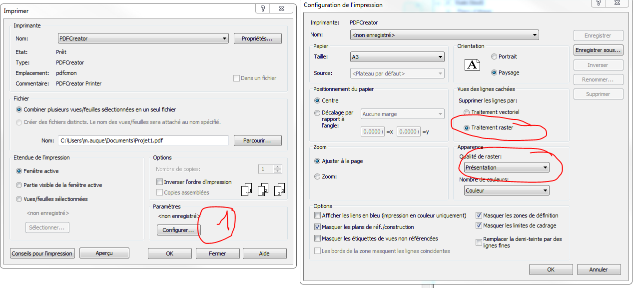 Lorsque j'imprime en PDF, les feuilles contenant des vues en 3D, l'apparence des vues en plan et coupes est médiocre.