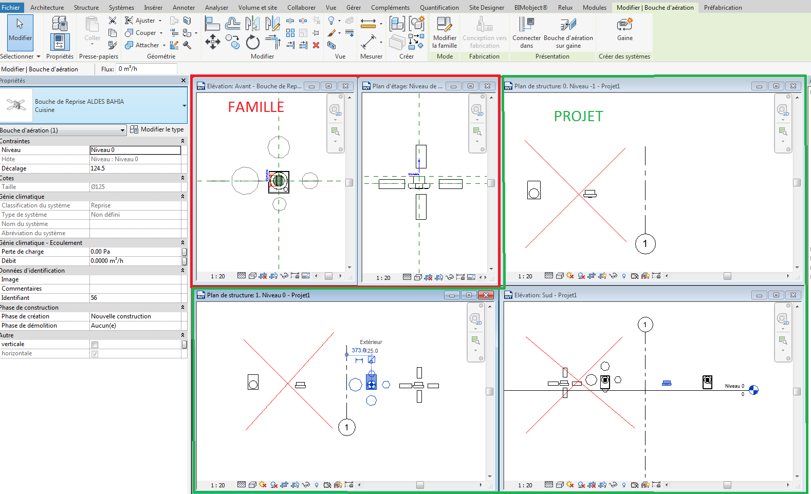 Du coup sur le niveau inférieur la bouche de ventilation apparaît également (car tout les éléments même partiellement présent sur le niveau apparaissent)