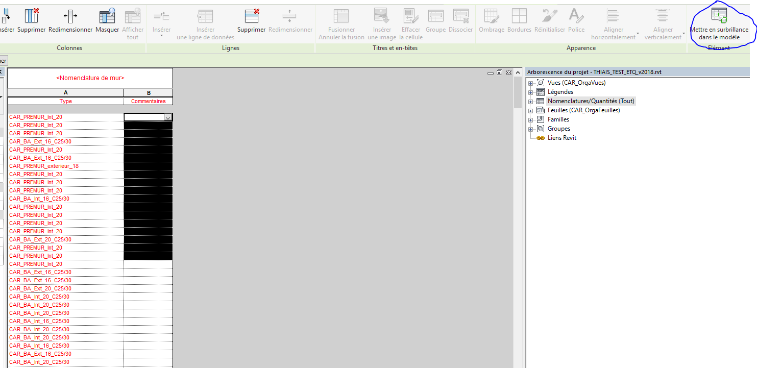 Chaque commentaire est en fait le nom d'un bloc que j'ai extrait d'un ficher DWG, j'aimerai pourvoir sélectionner les occurrences en fonction du commentaire pour pouvoir les remplacer par la bonne famille.