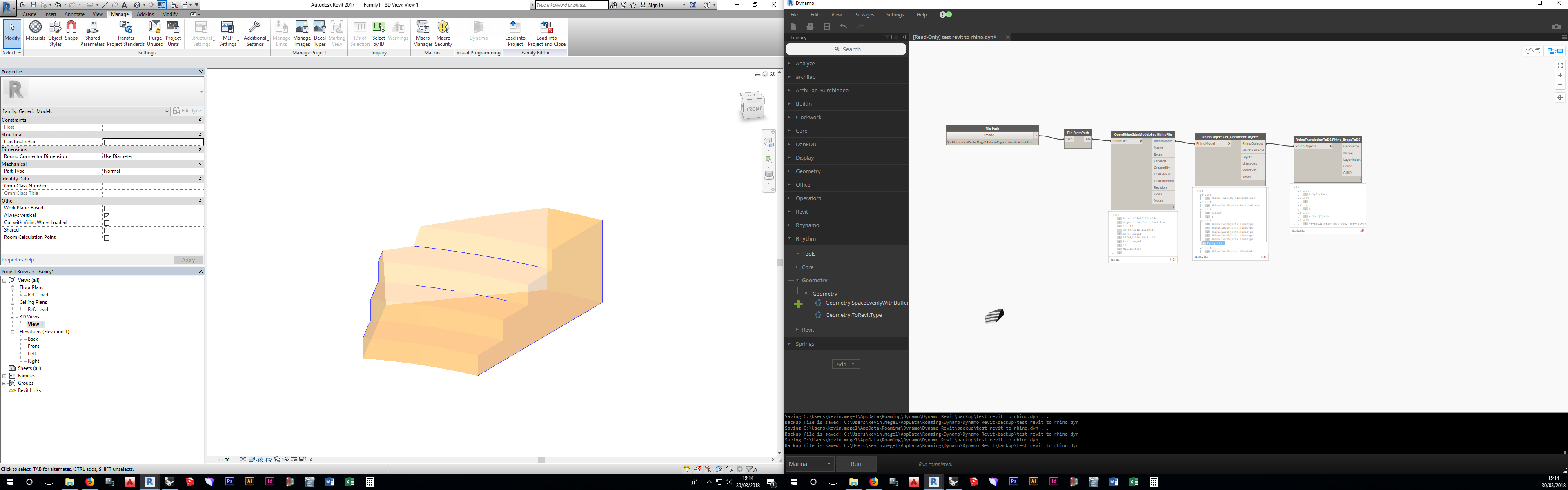 hello a tous, je cherche a importer proprement un objet rhino sur revit, je passe actuellement par dynamo, mais j'ai un petit soucis, depuis dynamo j'arrive a importer l'objet de rhino, mais le résultat sur revit est plutôt surprenant.