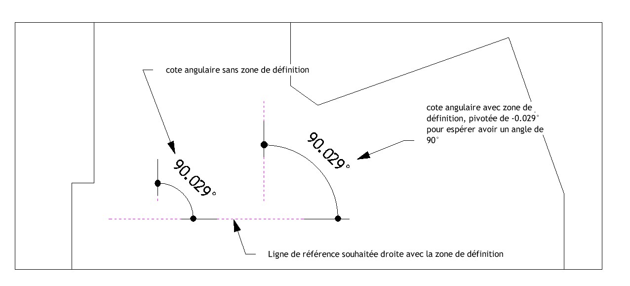 5/ j'ai donc ensuite voulu faire pivoter ma zone de définition de 0.029° pour que je puisse avoir un angle de 90°...impossible, c'est comme-ci la zone ne voulait pas faire de rotation de cette valeur