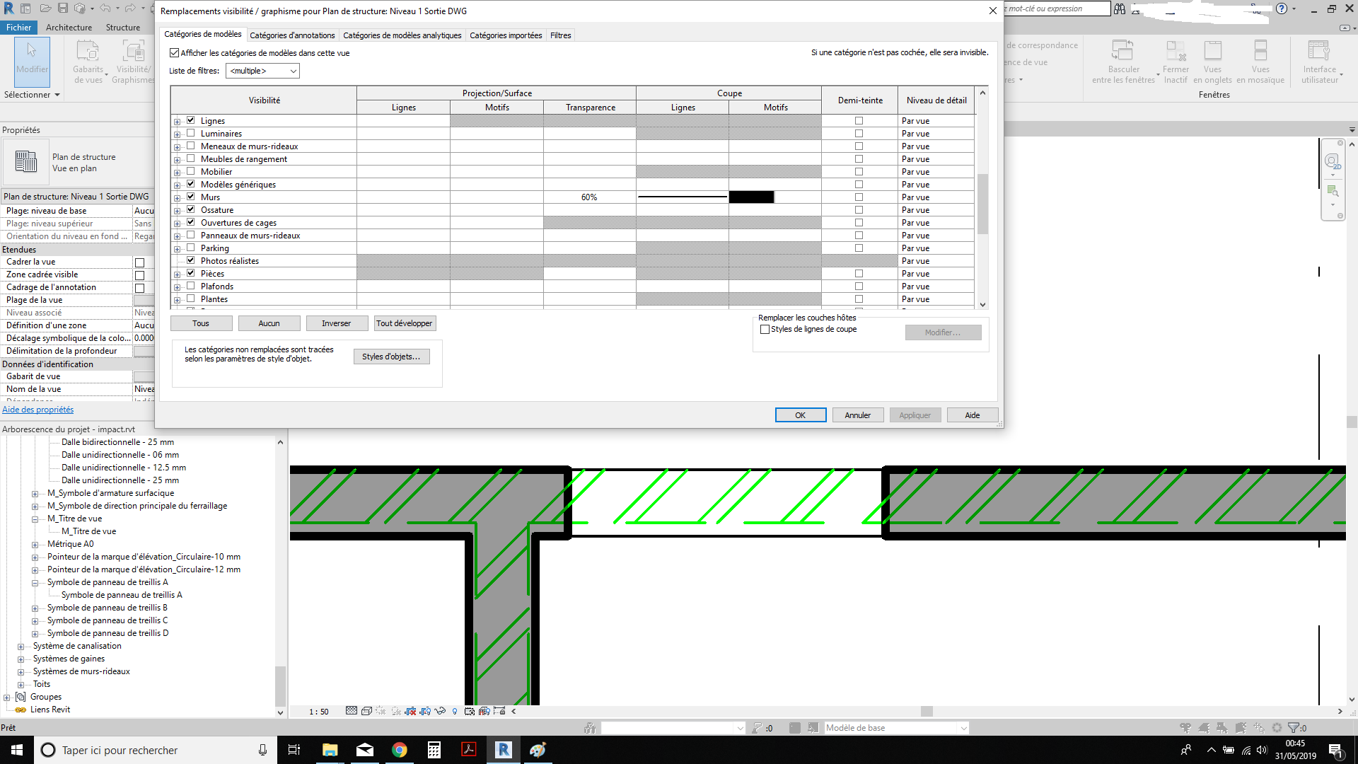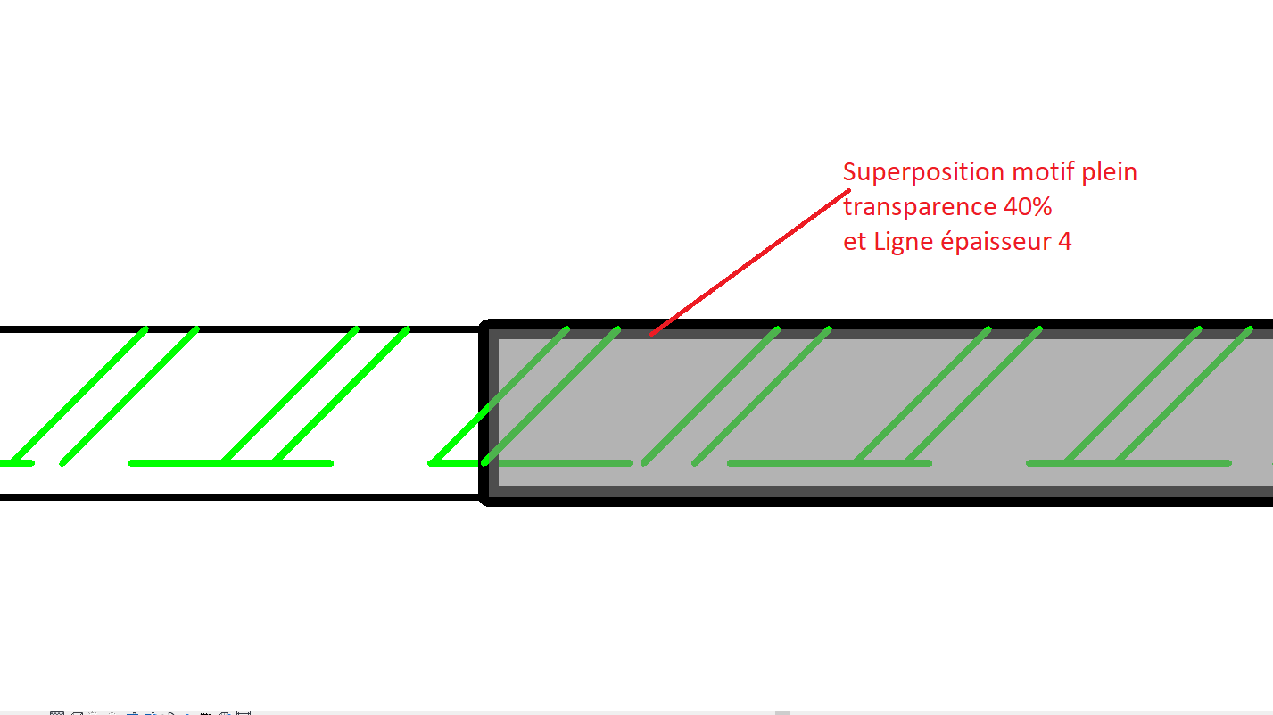 J'ai un problème de superposition entre le trait épais de mon mur et le motif grisé de coupe du mur.