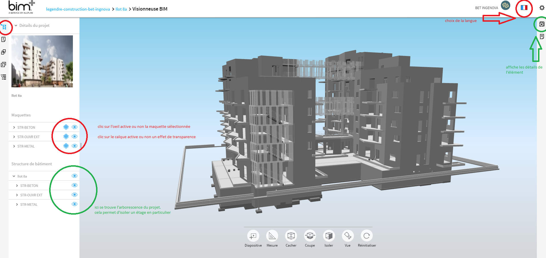 Pour les nouveaux utilisateurs de bim+, je vous envoie une capture d'écran que l'on diffuse en interne pour expliquer quelques fonctions qui vous sont proposées.