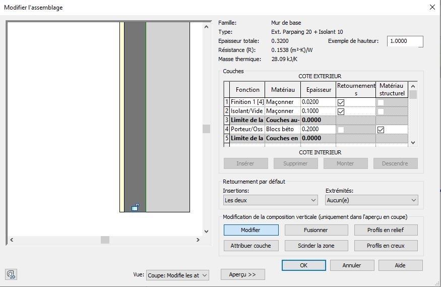 Je vais partir du principe qu'il s'agit de modéliser des murs composés sur Revit. Rien ne semble l'indiquer clairement (ou alors, je suis vraiment un demeuré, possibilité qu'il ne faut pas écarter), mais la terminologie employée tout au long de ce fil de discussion me laisse à croire qu'il s’agit de ce logiciel.