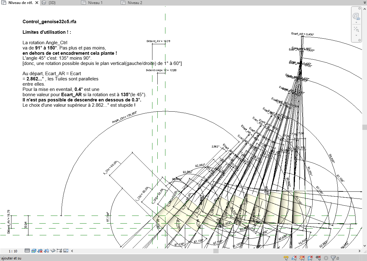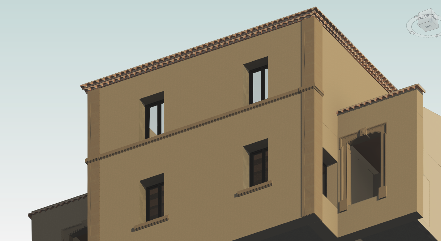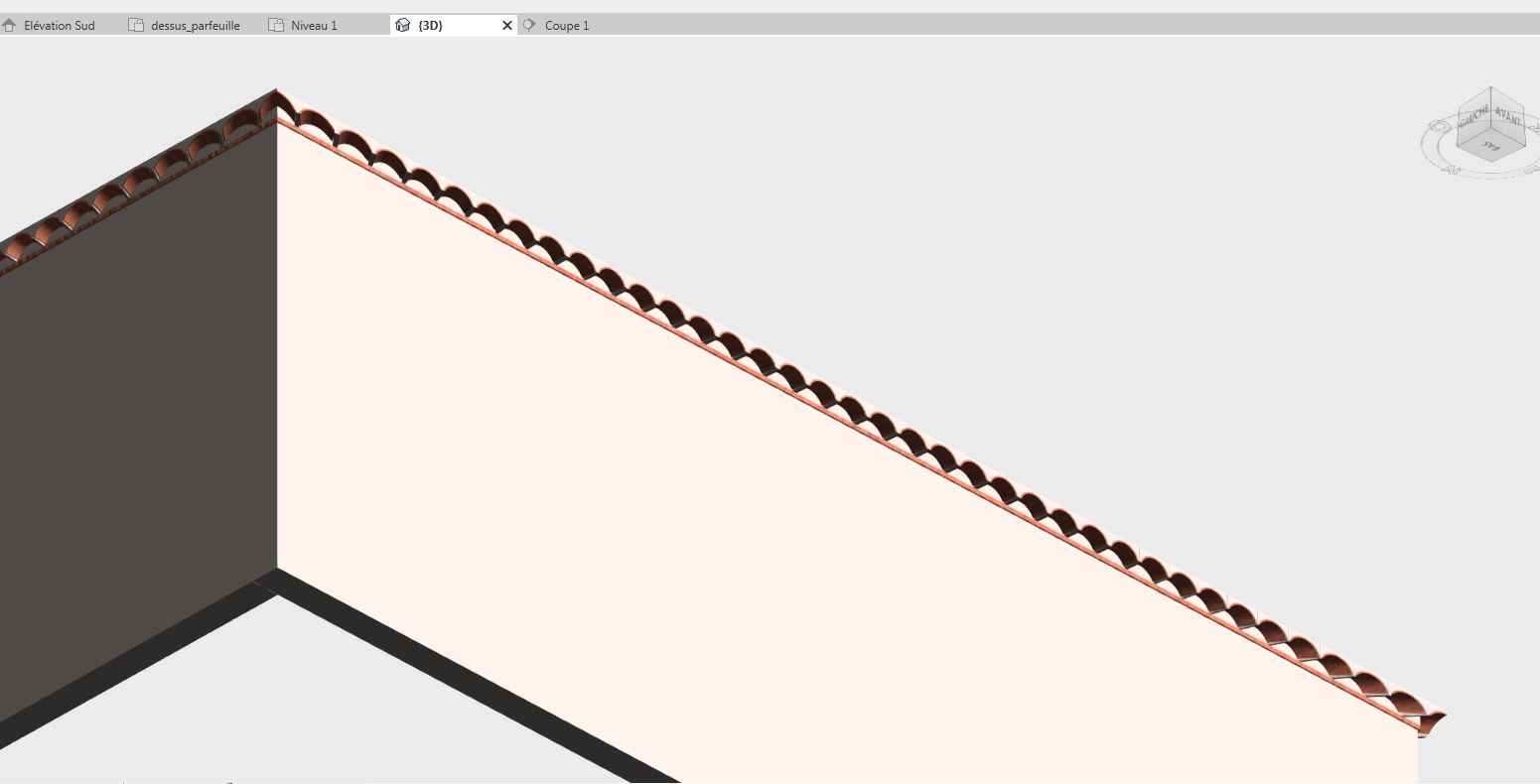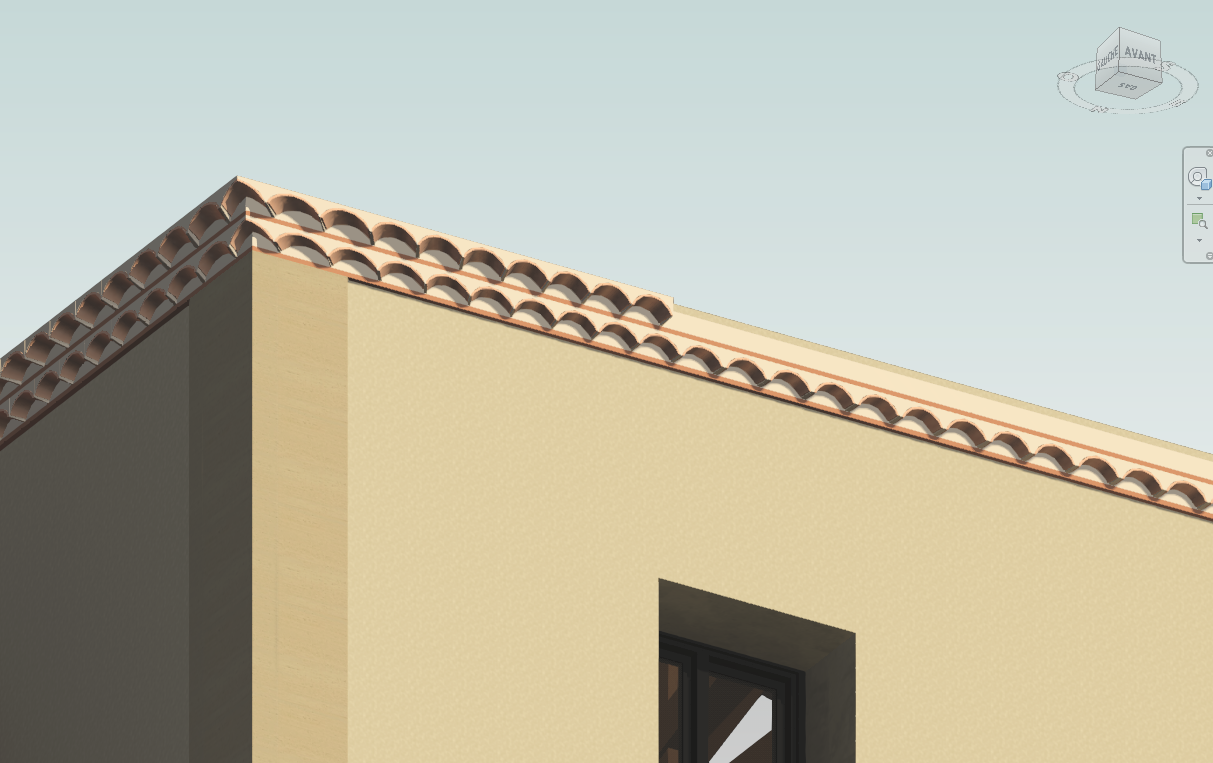 Je modifie les familles car l'épaisseur de mortier est trop importante sur le dessus des tuiles (pour l'instant, tout est fait avec le simple "modèle générique métrique") .