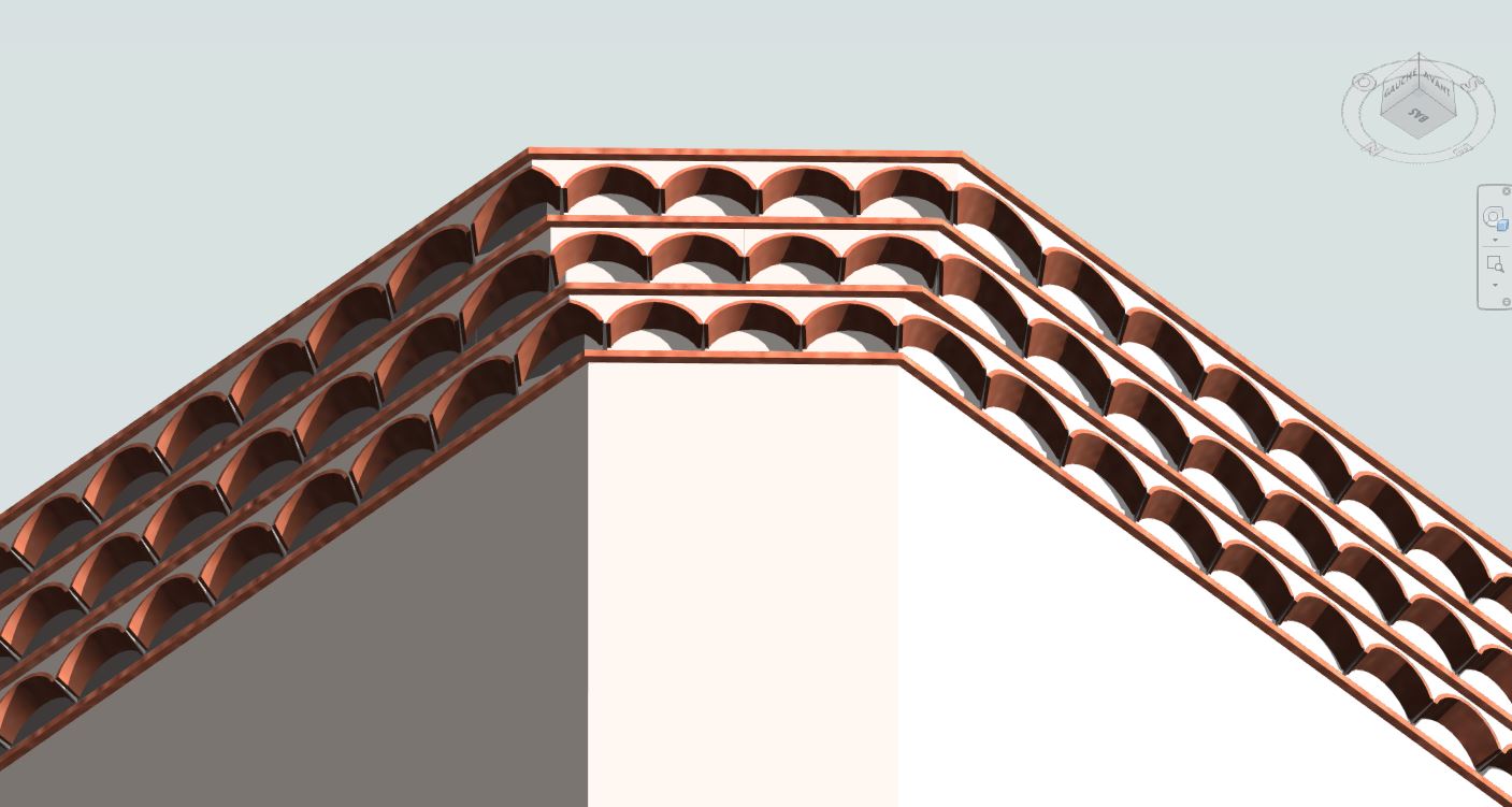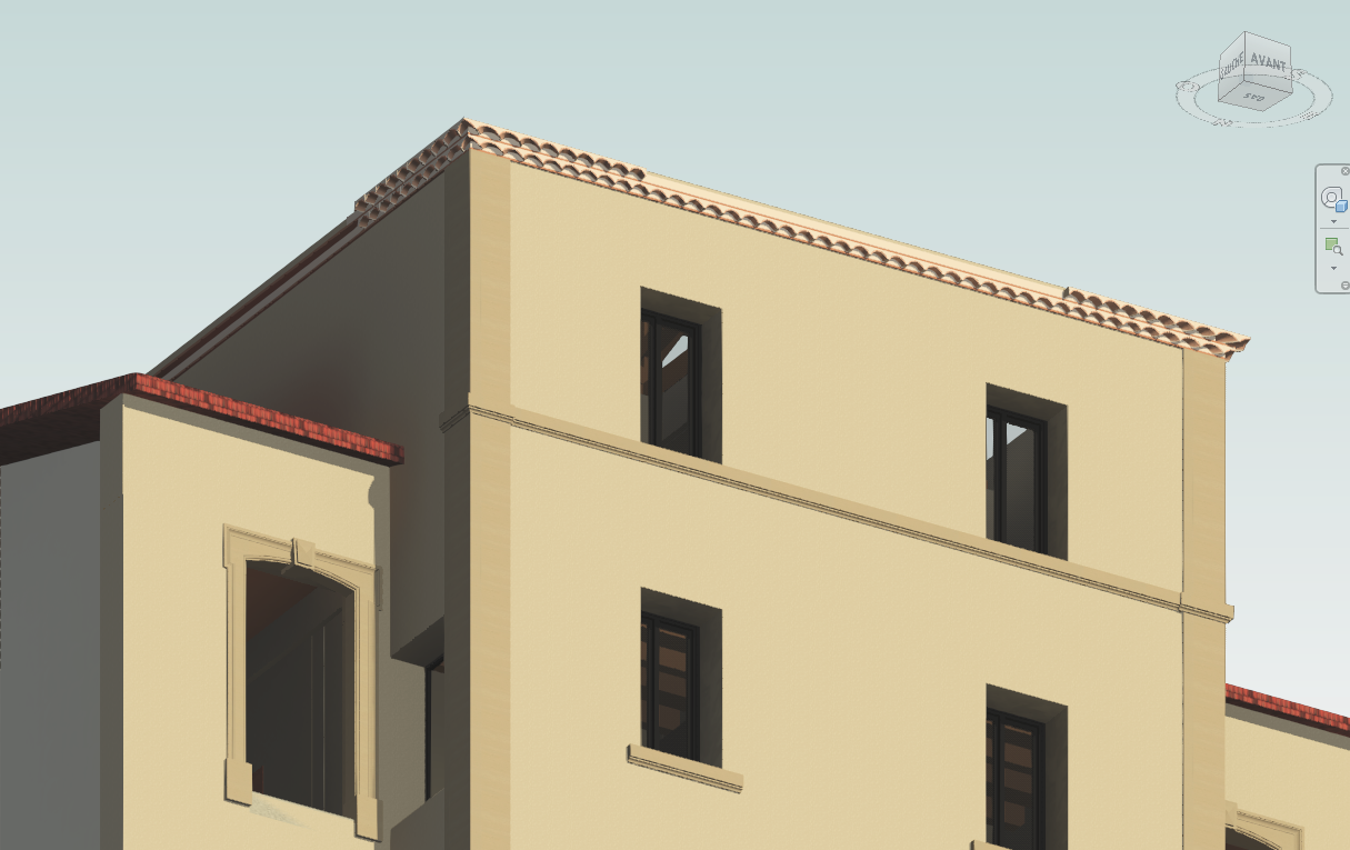 Je finalise une génoise avec un retournement à 90° sur Revit.