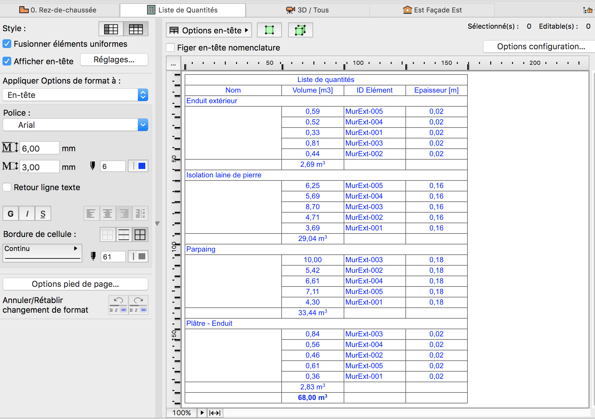 J'ai étudié les différents paramètres de liste pour les murs dans les nomenclatures et sauf erreur de ma part, on peut ressortir les volumes des couches extérieures et intérieures uniquement. As tu fait le même constat?