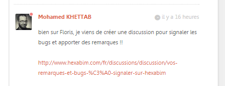 Ici il s'agit d'un lien posté dans la messagerie privé, quand je clique sur ce lien, il m'ouvre un nouvel onglet et me renvoi vers http://www.hexabim.com/fr/communaute/connexion