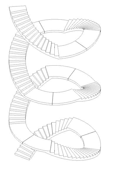 Pour les autres faces de l'escalier, il suffit de faire des projections sur un plan parallèle au sol.