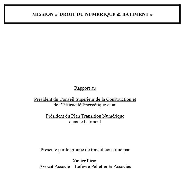 Xavier PICAN, avocat associé du cabinet Lefèvre Pelletier & Associés, a rendu son rapport de mission concernant le droit du numérique & bâtiment.