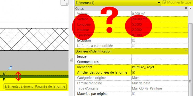 Eléments & Phases pour le métré, (problème de l'outil modifier la forme vis à vis des propriétés > erreur des surfaces)