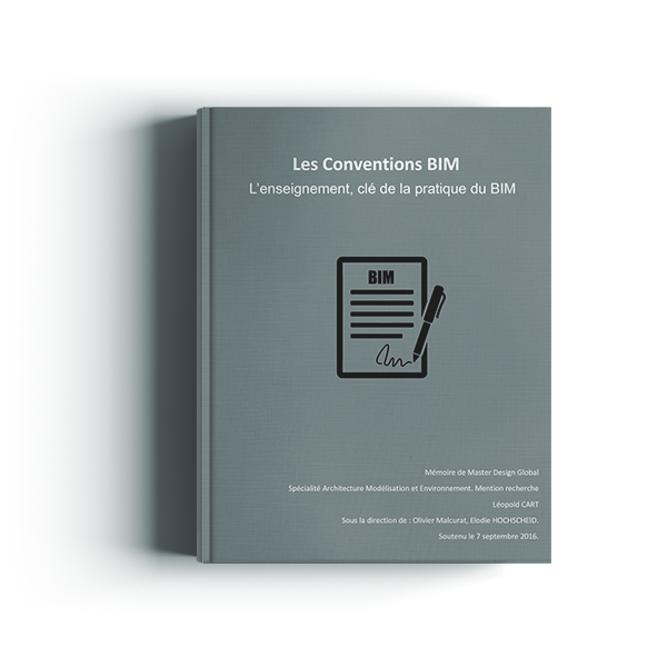 Ce mémoire s'intéressera à la compréhension des conventions BIM et à leur intégration dans la formation des professionnels et des étudiants. Le BIM et les conventions BIM proposent une méthode d'organisation, autour de logiciels, pour structurer le travail des architectes avec les différents acteurs du monde du bâtiment. Pour maitriser les nouvelles manières de modélisation de l'architecture, il n'est pas nécessaire d'apprendre uniquement une interface mais une méthode de travail adaptée aux innovations actuelles