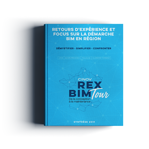 A l’issue des 4 étapes du REX BIM Tour en 2019, la Fédération CINOV publie un document « synthèse » regroupant les interviews d’acteurs incontournables du BIM, de la construction et de la formation et également les synthèses des 4 tables-rondes et des 14 retours d’expériences présentés lors des rencontres de Lyon, Aix-en-Provence, Toulouse et Clermont-Ferrand. Cette publication vient compléter les contenus déjà accessibles en ligne sur le site www.rexbimtour.fr : capsules pédagogiques, synthèses d’étapes, captations vidéo, etc…